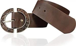 breiter Taillengürtel 5,5 cm mit einzigartiger Kroko Schnalle, echt Leder, 18622, Größe:Körperumfang 90 cm/Gesamtlänge 105 cm, Farbe:Dunkelbraun