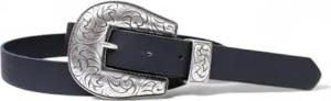 Damen Ledergürtel 100% Rindsleder 3 cm, Western mit silberner floral verzierter Metall-Gürtelschnalle 8,5 x 7,5 cm und Schlaufe 2 cm, extra flach, Made in Germany, für Festivalbesuch