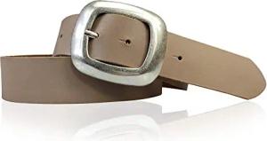 Damen Gürtel Rindleder 3 cm mit mattsilberner Schnalle 5 cm x 4,5 cm und Metallschlaufe, jeansgeeignet, auch als Taillengürtel, Made in Germany