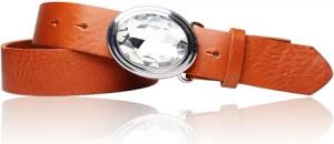 Strass Gürtel Damen 4 cm mit funkelnder Strass Gürtelschnalle oval, Gürtel für Damen echt Leder,17877, Größe:Körperumfang 90 cm/Gesamtlänge 105 cm, Farbe:Cognac