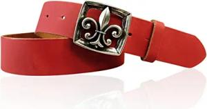 Gürtel Damen 4 cm mit Lilien Schnalle, französische Lilie, Ledergürtel 18807, Größe:Körperumfang 95 cm/Gesamtlänge 110 cm, Farbe:Rot