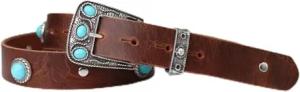 Ledergürtel Rindsleder 3 cm Breite 2-3 mm Stärke Schmuckschnalle mit türkisen Steinen 5,5 x 4,5 cm Druckknopfsystem Ethno Statement Made in Germany Größen 85-120