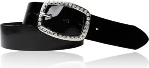 Strass Gürtel Damen 4 cm mit funkelnder Strass Gürtelschnalle oval, Gürtel für Damen echt Leder,17877, Größe:Körperumfang 95 cm/Gesamtlänge 110 cm, Farbe:Schwarz-Lack
