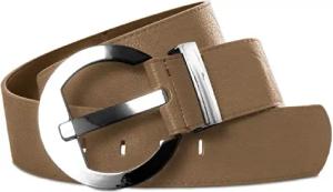 Elastischer Damen Taillengürtel, ca. 6 cm breiter Hüftgürtel mit silberner Ring-Schließe, camel, 80cm-80 cm (für Taillenweite 85-105 cm)-Camel