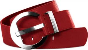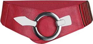 Elastischer Damen Taillengürtel, ca. 6 cm breiter Hüftgürtel mit silberner Ring-Schließe-80 cm (für Taillenweite 85-105 cm)-Rot