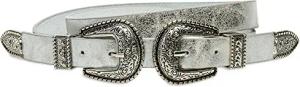 GU316 stylischer Damen Westerngürtel Trachtengürtel mit Doppelschnalle, Gürtelgröße:95 [Körperumfang 90-100 cm], Farbe:silber