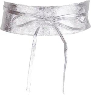 Taillengürtel Wickelgürtel aus Echtleder, Schleife mit breitem Bund (mit breitem Bund zum Wickeln (7cm Breit, 265cm lang) OBi Gürtel, Bindegürtel, Schnürgürtel, Wickelgürt (Metalic Silber)