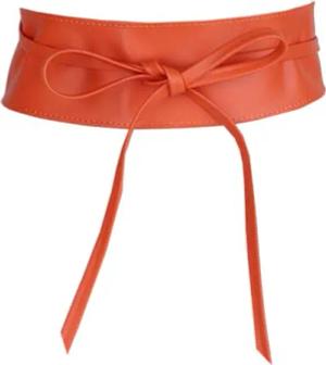 Taillengürtel Wickelgürtel aus Echtleder, Schleife mit breitem Bund (mit breitem Bund zum Wickeln (7cm Breit, 265cm lang) OBi Gürtel, Bindegürtel, Schnürgürtel, Wickelgürt (Orange)
