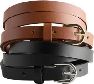 Damen 2er-Pack schmale Gürtel aus Polyurethan Black/Tan S