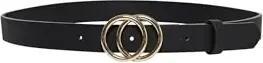 Damen Standard Schmaler Ledergürtel Black with Gold M