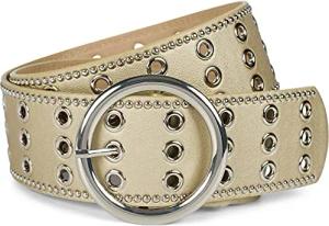 Damen breiter Gürtel mit Lochnieten und runder Schließe, Nietengürtel, Taillengürtel, kürzbar 03010122, Farbe:Gold, Größe:95cm