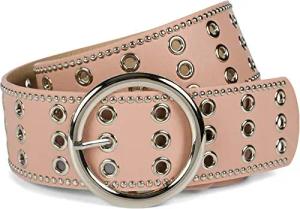 Damen breiter Gürtel mit Lochnieten und runder Schließe, Nietengürtel, Taillengürtel, kürzbar 03010122, Farbe:Rose, Größe:85cm
