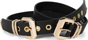 Damen Gürtel mit doppelter goldener Schnalle und Lochnieten, B-Low Belt, Taillengürtel, kürzbar 03010121, Farbe:Schwarz, Größe:95cm