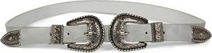 Gürtel mit doppelter verzierter Schnalle im Western Style, B-Low Belt, Taillengürtel, kürzbar, Damen 03010085, Farbe:Hellgrau, Größe:90cm
