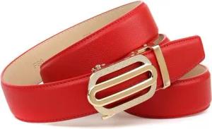 Damen Automatikgürtel – Rotes Echtleder mit goldfarbener Schließe 3,5 cm breit (100)