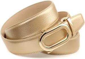 Damen Automatikgürtel – Goldfarbener Ledergürtel mit Doppelring-Schließe, 3,5 cm Breite (90)