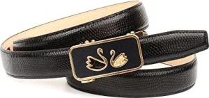 Damen Automatikgürtel – 3D-Design in Schwarz, 3,5 cm breit, schwarze Metallic-Schnalle mit rotem Raster & Logo, hochwertiges Leder, exklusives Fashion-Accessoire (100)