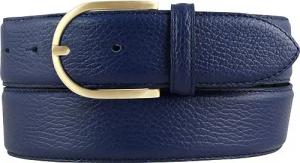 Italienischer Damen-Gürtel, 35 mm breit, Damen, Chinogürtel, Hosengürtel, strukturiertes Leder, Schließe Gold | Blau 120cm