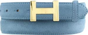 Damen-Gürtel aus Veloursleder 2,5 cm | Velour-Ledergürtel für Damen 25mm | Wildleder-Gürtel mit runder, goldener Gürtelschließe | Jeansblau 85cm