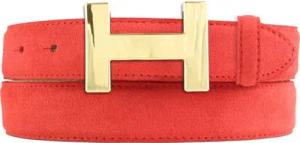 Damen-Gürtel aus Veloursleder 3,0 cm | Velour-Ledergürtel für Damen 30mm | Wildleder-Gürtel mit runder, goldener Gürtelschließe | Rot 80cm