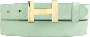 Damen-Gürtel aus weichem Vollrindleder Vintage-Look 3 cm | Leder-Gürtel für Damen 30mm | Schmaler Gürtel Used-Look mit goldener Gürtelschnalle | Mintgrün 105cm