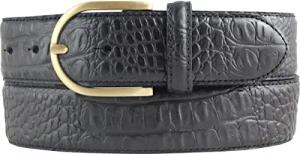 Damen-Gürtel mit Krokoprägung 4 cm | Leder-Gürtel für Damen 40mm Kroko-Optik | Kroko-Muster 4cm mit runder Gürtelschließe | Schwarz 80cm