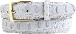 Damen-Gürtel mit Krokoprägung 3 cm | Leder-Gürtel für Damen 30mm Kroko-Optik | Kroko-Muster mit runder, goldener Gürtelschließe | Weiß 80cm