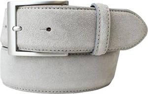 Hochwertiger Gürtel mit Edelstahl-Gürtelschnalle aus Veloursleder 4 cm | Velour-Ledergürtel für Damen Herren 40mm | Wildleder-Gürtel 4cm | Hellgrau 100cm