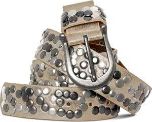 GU223L 100% Leder Damen Vintage Nietengürtel, Gürtelgröße:95, Farbe:beige