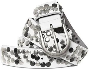 GU223 Damen Vintage Nietengürtel, Gürtelgröße:100, Farbe:weiss