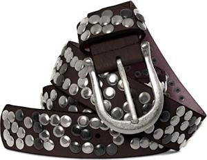 GU223 Damen Vintage Nietengürtel, Gürtelgröße:80, Farbe:dunkelbraun