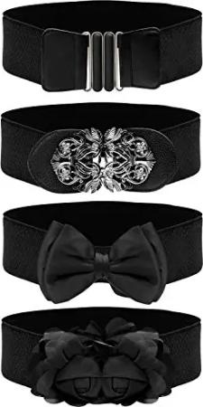4er Pack Elastischer Taillengürtel Damen Breit - 4 Designs - 4er Set Damen Gürtel Breit - 4 Damen-Gürtel Stretchgürtel - Breiter Gürtel Damen für Kleid - Schwarz