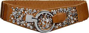 GU300-N elastischer breiter Damen Stretch Taillengürtel mit Nieten Dekor, Gürtelgröße:78 [für Körperumfang 75-90 cm], Farbe:cognac