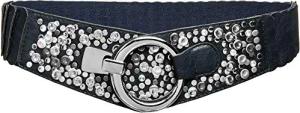 GU300-N elastischer breiter Damen Stretch Taillengürtel mit Nieten Dekor, Gürtelgröße:78 [für Körperumfang 75-90 cm], Farbe:dunkelblau
