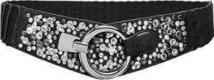 GU300-N elastischer breiter Damen Stretch Taillengürtel mit Nieten Dekor, Gürtelgröße:78 [für Körperumfang 75-90 cm], Farbe:schwarz
