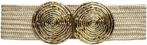 GU325 breiter elastischer Damen Stretch Taillengürtel mit goldfarbener Doppelschnalle, Gürtelgröße:75 [für Körperumfang 85-95 cm], Farbe:beige