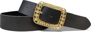 Damengürtel 4 cm breit echtes Leder goldene Strass-Dornschnalle 8,5 x 6 cm wechselbar per Druckknopf extra flach plastikfrei feminin festlich