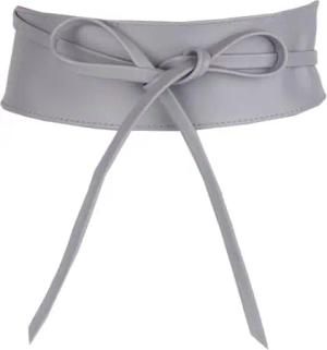 Taillengürtel Wickelgürtel aus Echtleder, Schleife mit breitem Bund (mit breitem Bund zum Wickeln (7cm Breit, 265cm lang) OBi Gürtel, Bindegürtel, Schnürgürtel, Wickelgürt (Grau)