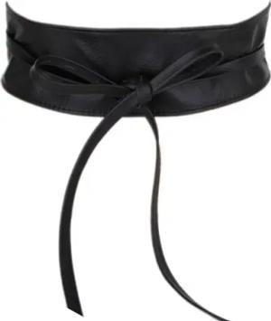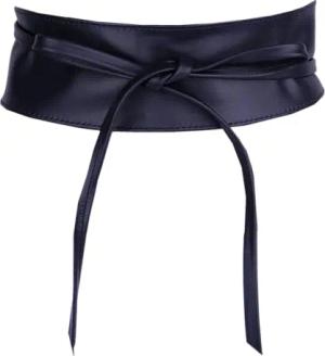 Taillengürtel Wickelgürtel aus Echtleder, Schleife mit breitem Bund (mit breitem Bund zum Wickeln (7cm Breit, 265cm lang) OBi Gürtel, Bindegürtel, Schnürgürtel, Wickelgürt (Schwarz)