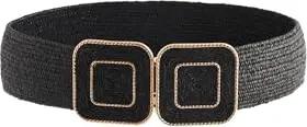 Damen Standard Breiter Bastgürtel mit eckiger Schnalle Schwarz L