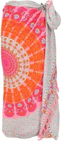 GURU SHOP Bali Sarong, Wandtuch, Wickelrock, Mandala Sarongkleid - Türkis/pink, Herren/Damen, Synthetisch, 160x115 cm