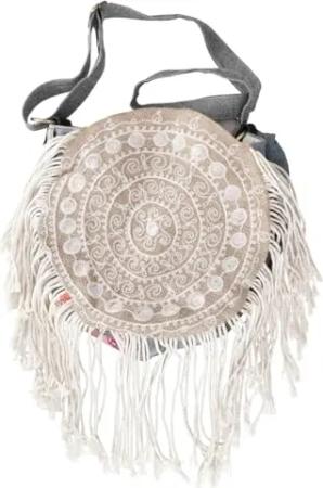 GURU SHOP Boho Schultertasche, Hippie Tasche mit Fransen - Modell 1, Unisex - Erwachsene, Baumwolle, 25x25x9 cm
