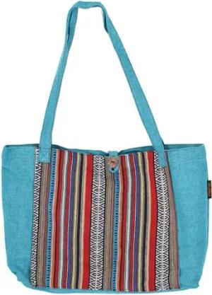 GURU SHOP Boho Schultertasche, Hippie Tasche, Vintage Umhängetasche - Petrol, Unisex - Erwachsene, Baumwolle, 25x25x7 cm