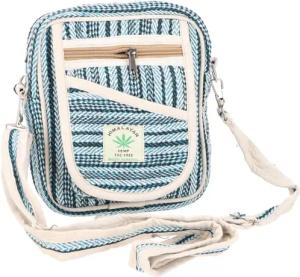 GURU SHOP Praktische Hanf Gürteltasche, Crossbag, Ethno Bauchtasche, Crossbody Tasche - Natur/türkisblau, Unisex - Erwachsene, 15x20x8 cm