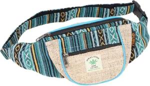 GURU SHOP Praktische Gürteltasche, Ethno Bauchtasche, Sidebag - Blau, Unisex - Erwachsene, Hanf, 15x20x5 cm