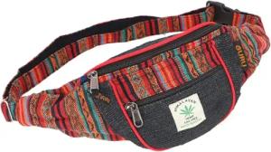 GURU SHOP Praktische Hanf Gürteltasche, Crossbag, Ethno Bauchtasche, Crossbody Tasche - Rot/schwarz, Unisex - Erwachsene, Baumwolle, 15x20x8 cm