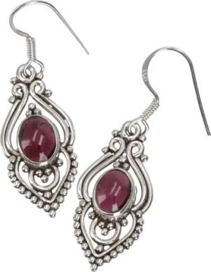 GURU SHOP Silberohrring, Indische Silberrohrringe, Granat, 3x1,5x0,7 cm