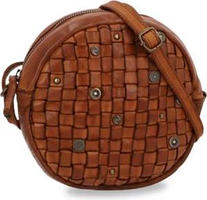 Leder Umhängetasche – Gabriella Kleine Schultertasche aus Rindsleder im in Braun Flechtoptik-Design mit Metallapplikationen, verstellbarer Trageriemen