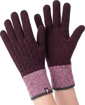Damen Winter Fleece Strick Elegant Norwegermuster Handschuhe (M-L, Mulberry)