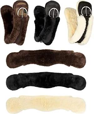 Westerngurt Classical mit echtem Lammfell - anatomischer Sattelgurt Western Bauchgurt 65 70 75 80 85 90cm Natur Braun Schwarz (65cm Braun)